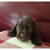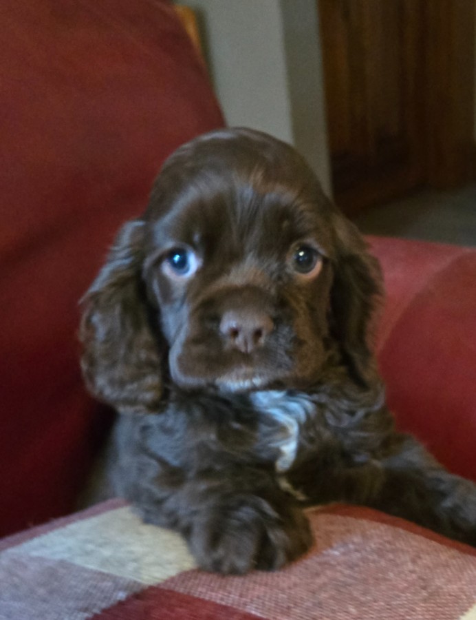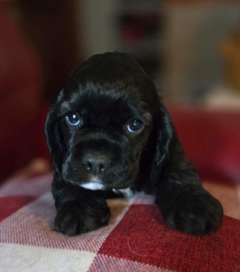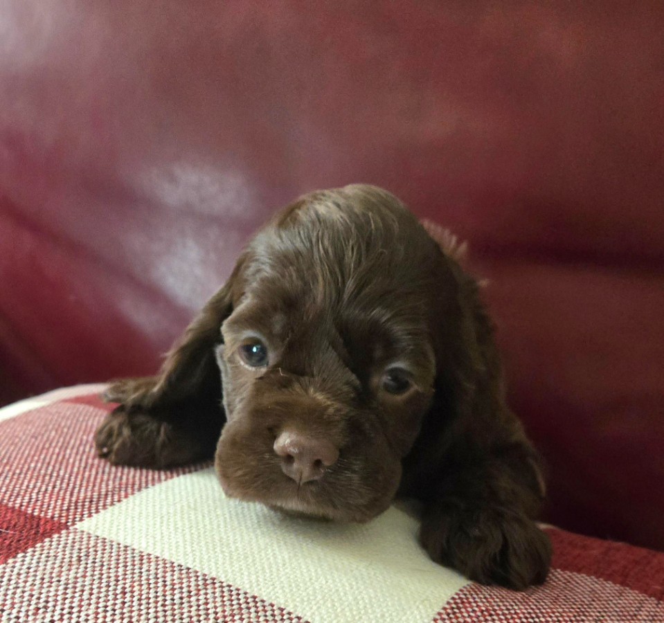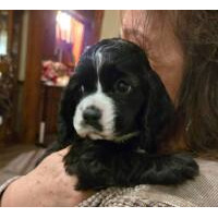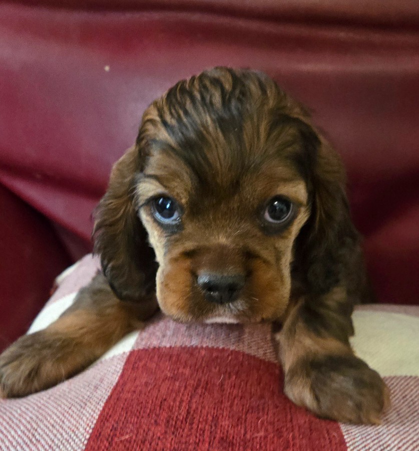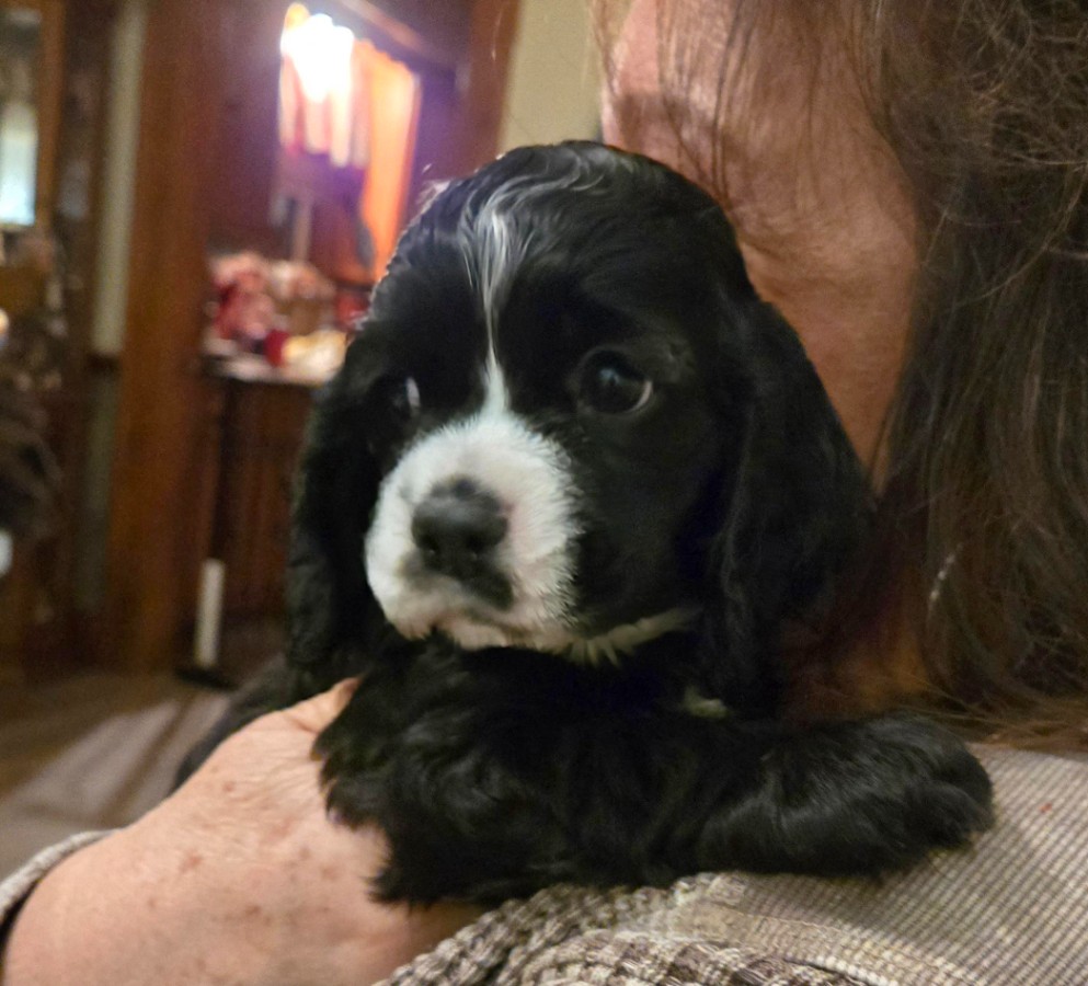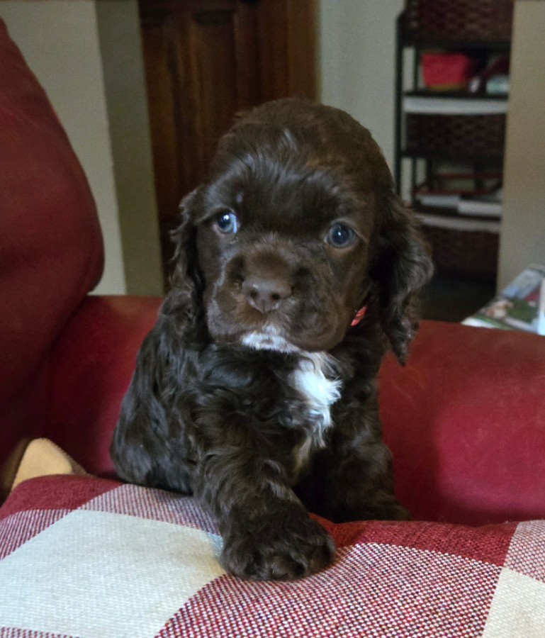 NEW 2026 COCKER PUPPIES ARE HERE, BORN DECEMBER 1, 2025. 2026 COCKER PUPPIES. I have bred Stormy, my lovely black sable female, to a very nice brown and white male cocker spaniel, Brady. They have had a gorgeous litter of six puppies. There are 2 black males and 1 sable male. There are 3 chocolate females. They are so much fun and very active. Puppies will be ready to go to their new homes on January 26, 2026. As of January 12th, there are 5 puppies available; one female has been sold. Puppies are $1300.00. Contact us today if you are interested in a puppy or have questions. Stormy has her OFA eye certification, hip and patella certification.. I have been a breeder for over 40 years of AKC champions and champion-lined cocker spaniels. My goal is always to raise beautiful, well-bred, high quality puppies that exemplify the standard of the breed. My puppies are born and raised in my home and are well-socialized with people and other dogs and spoiled a lot by me, my 4 children and 7 grandchildren. I don't have an outside kennel. With my current females, I have the ability to throw chocolates, chocolate/tans, reds, sables, blacks, black/tans, parti-colors & tri-colors. Contact me with any questions about my puppies, by phone or email. I don't ship puppies. Puppies are only available for pick-up. Sometimes, I can arrange to drive a short distance to meet people or I can arrange a transporter. Possibly, I can meet at a nearby airport if you fly in to pick up the puppy. Please call or e-mail me using the yellow highlighted e-mail link below. |